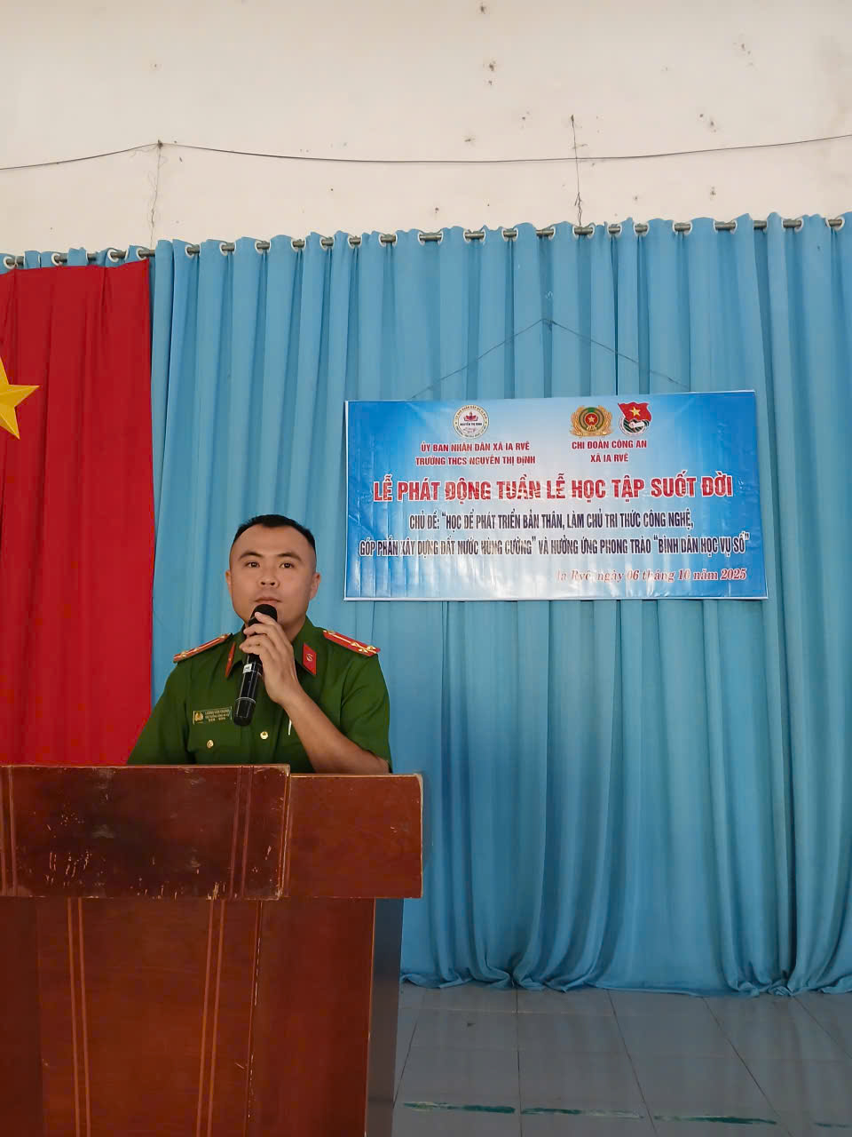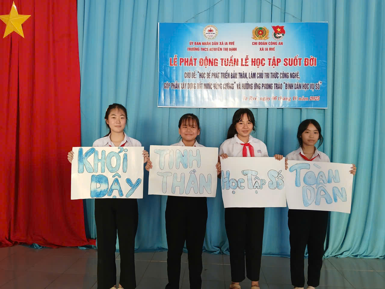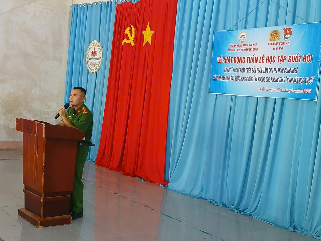 Sáng ngày 06/10/2025, nhà trường, chi đoàn nhà trường phối hợp với Chi đoàn công an xã Ia Rvê tổ chức Lễ phát động tuần lễ học tập suốt đời với chủ đề: “Học để phát triển bản thân, làm chủ tri thức công nghệ, góp phần xây dựng đất nước hùng cường” và tuyên truyền an ninh mạng, hưởng ứng phong trào “Bình dân học vụ số”.