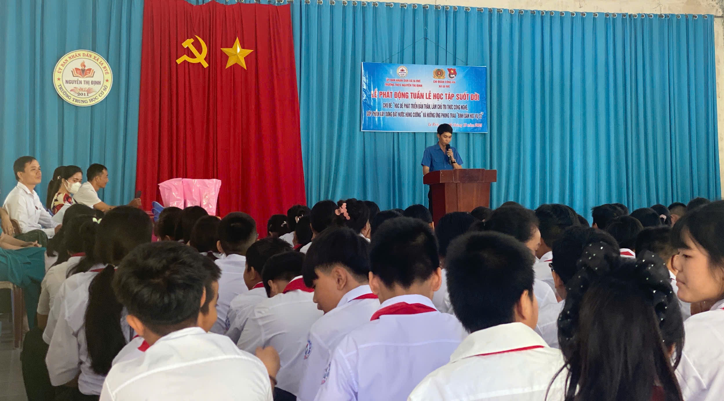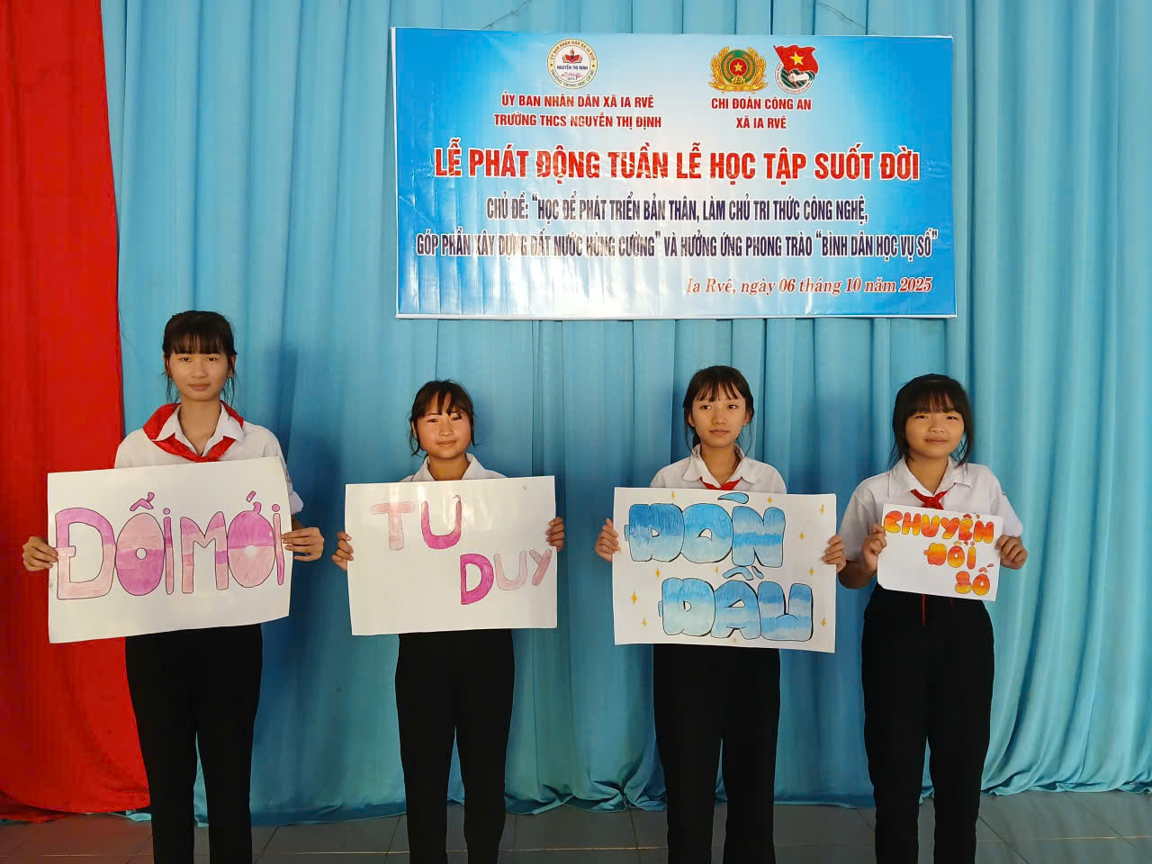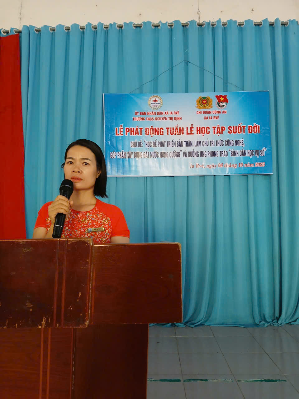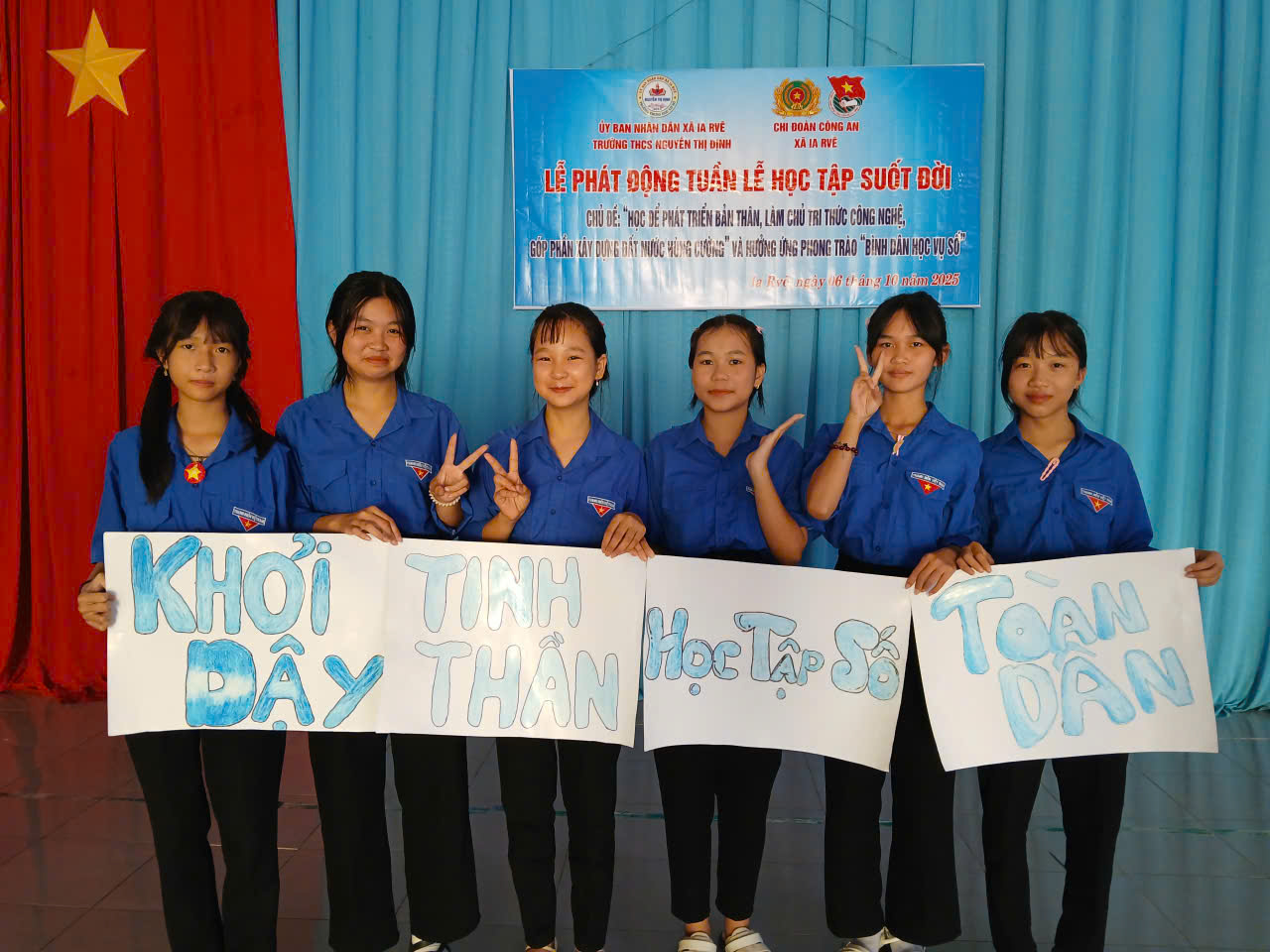 Sáng ngày 06/10/2025, nhà trường, chi đoàn nhà trường phối hợp với Chi đoàn công an xã Ia Rvê tổ chức Lễ phát động tuần lễ học tập suốt đời với chủ đề: “Học để phát triển bản thân, làm chủ tri thức công nghệ, góp phần xây dựng đất nước hùng cường” và tuyên truyền an ninh mạng, hưởng ứng phong trào “Bình dân học vụ số”.
