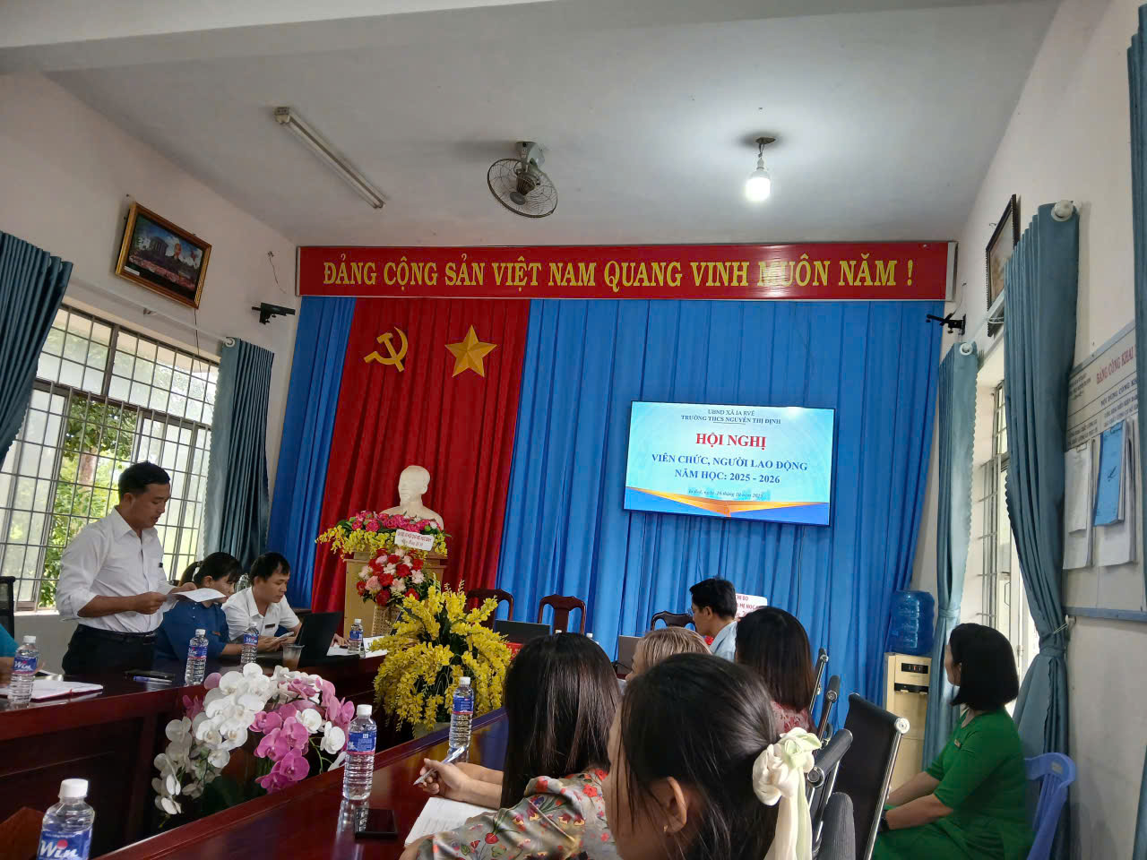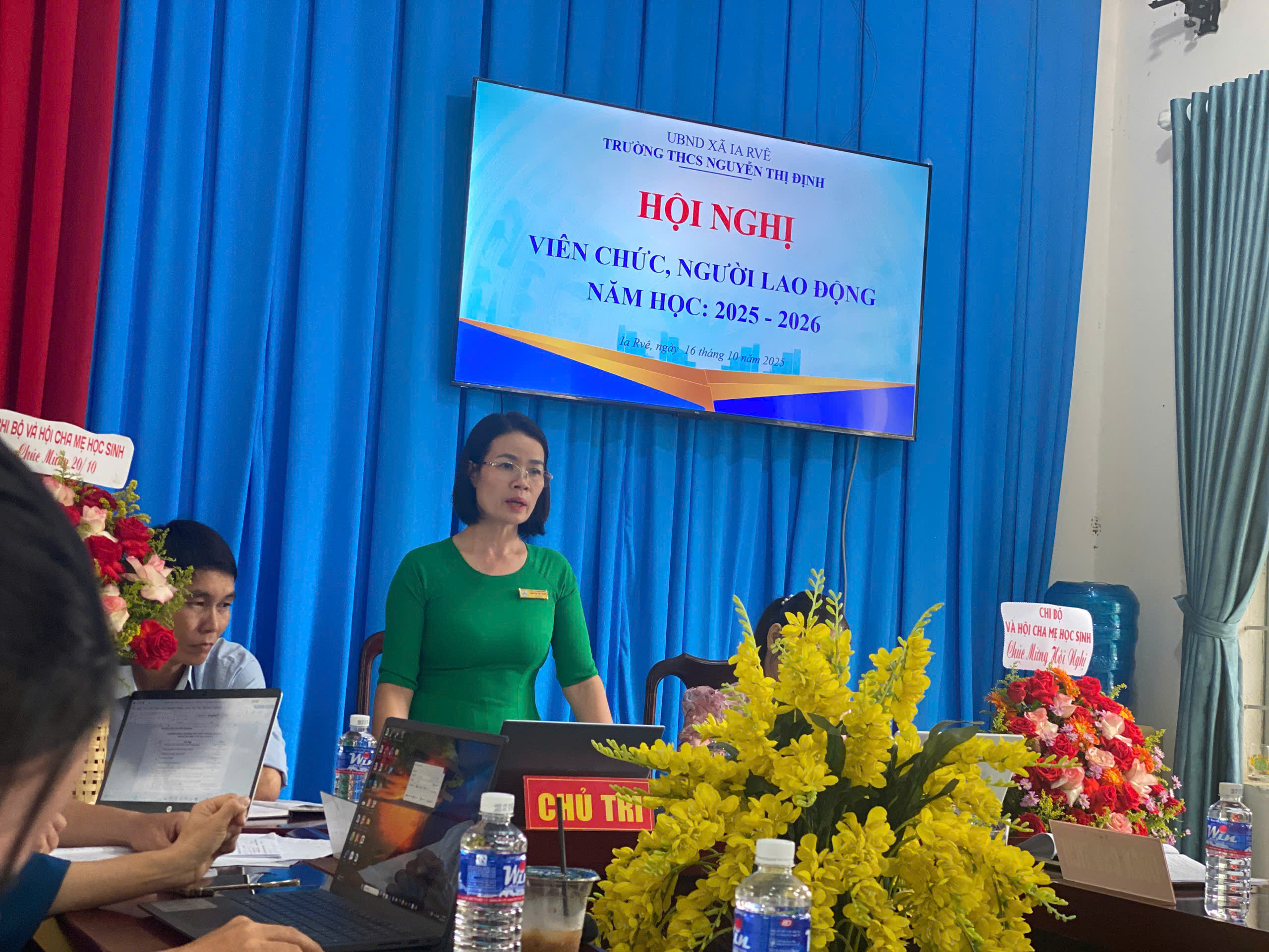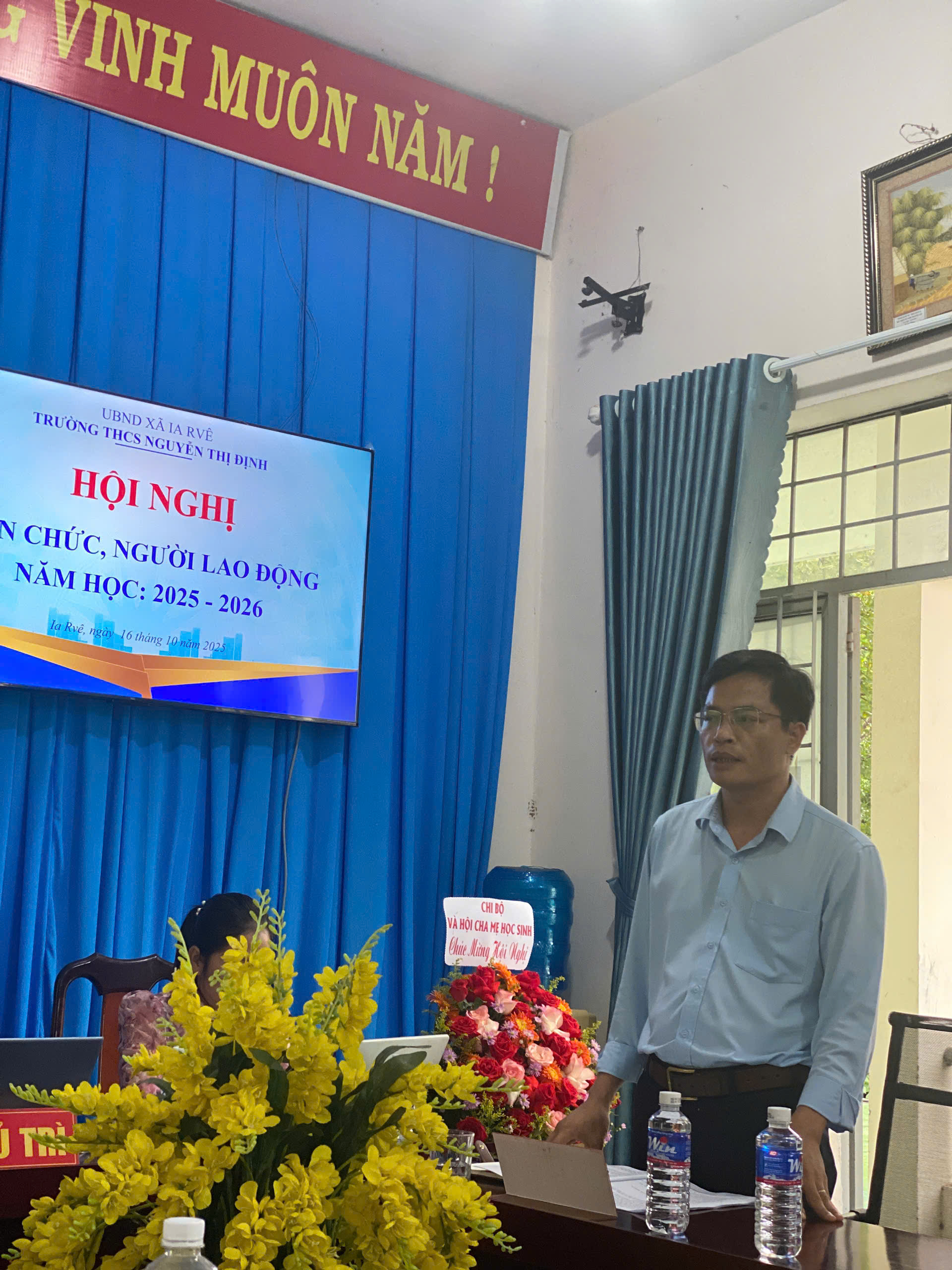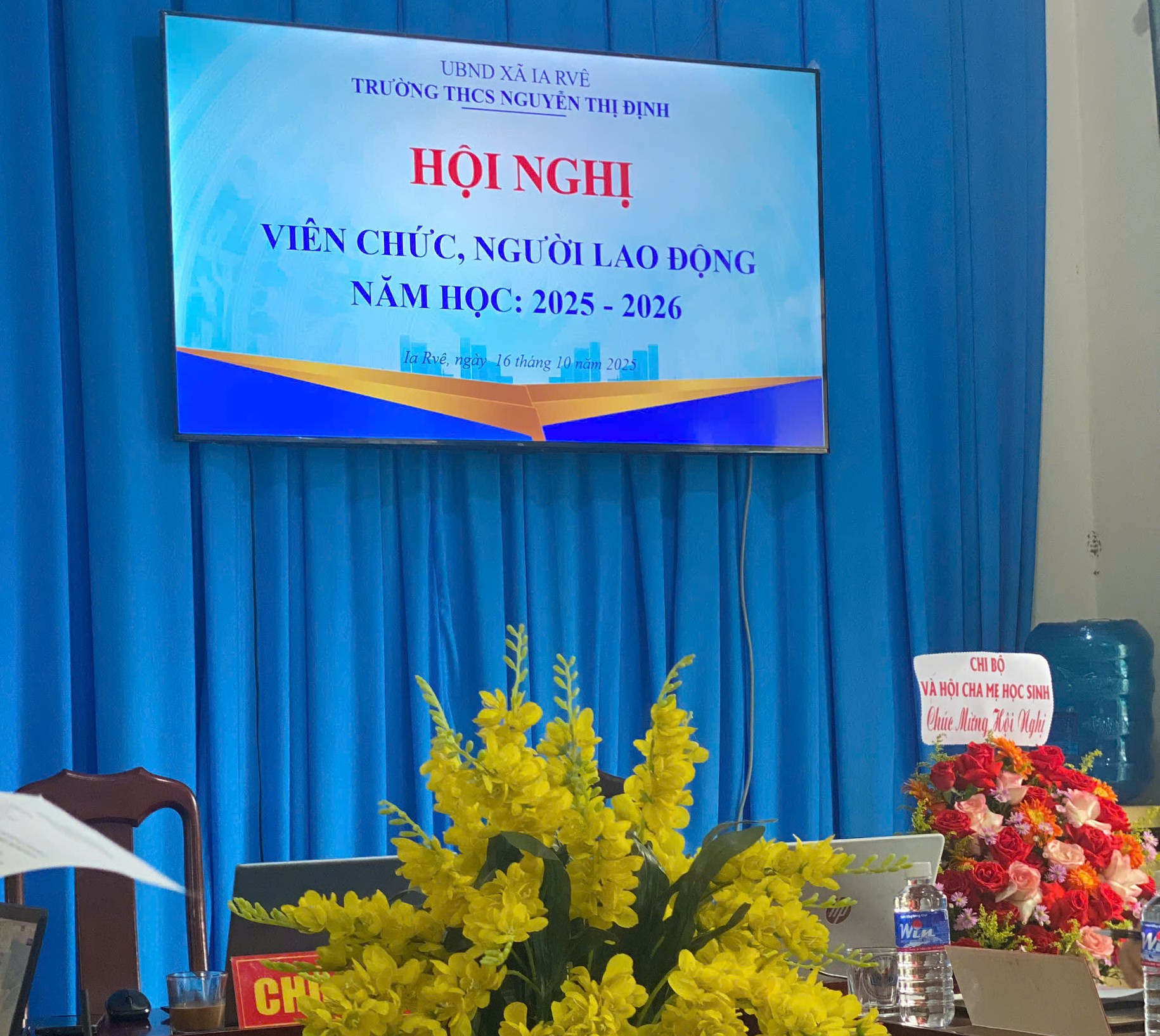 Ngày 16 tháng 10 năm 2025, Trường THCS Nguyễn Thị Định, xã Ia Rvê, tỉnh Đắk Lắk đã long trọng tổ chức Hội nghị viên chức – người lao động năm học 2025 – 2026. Đây là hoạt động thường niên có ý nghĩa quan trọng nhằm phát huy quyền làm chủ của cán bộ, giáo viên, nhân viên, người lao động trong nhà trường, đồng thời xây dựng kế hoạch thực hiện nhiệm vụ năm học mới.