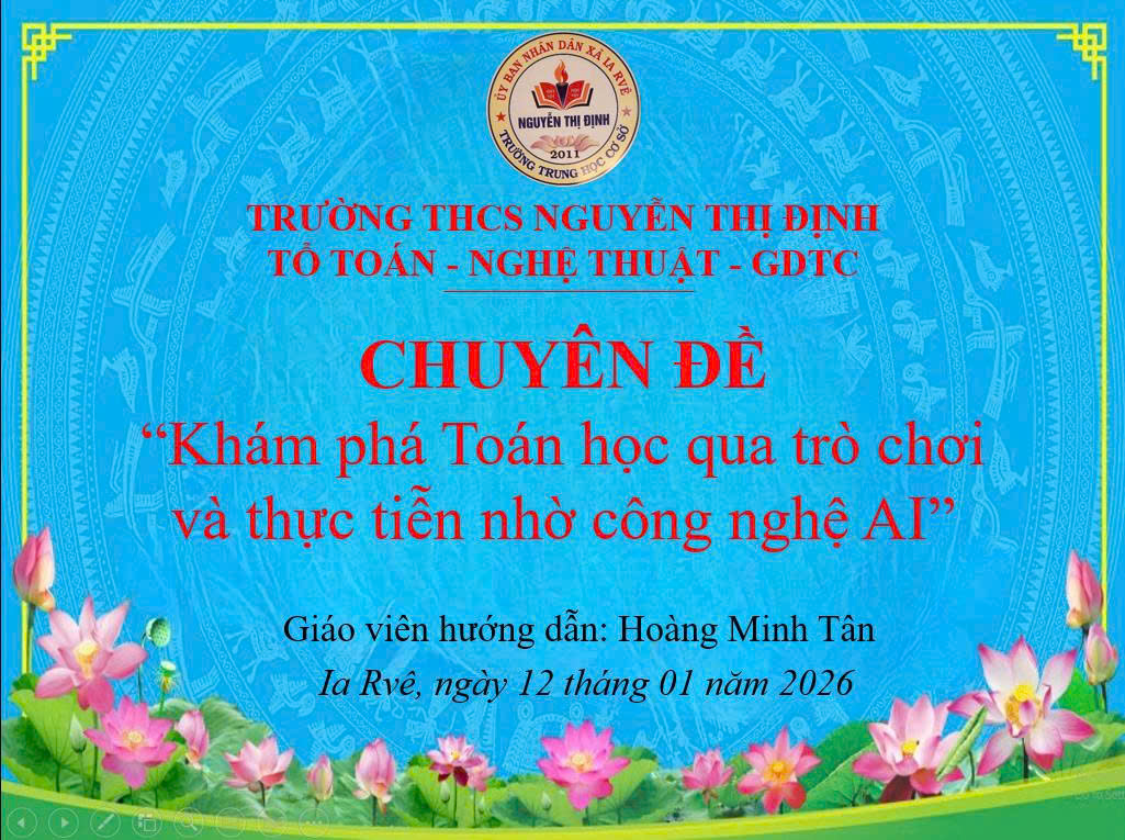 Sáng ngày 12/01/2026, Tổ Toán – Nghệ thuật – GDTC tổ chức sinh hoạt chuyên đề môn Toán khối 6 với chủ đề: “Khám phá Toán học qua trò chơi và thực tiễn nhờ công nghệ AI”.