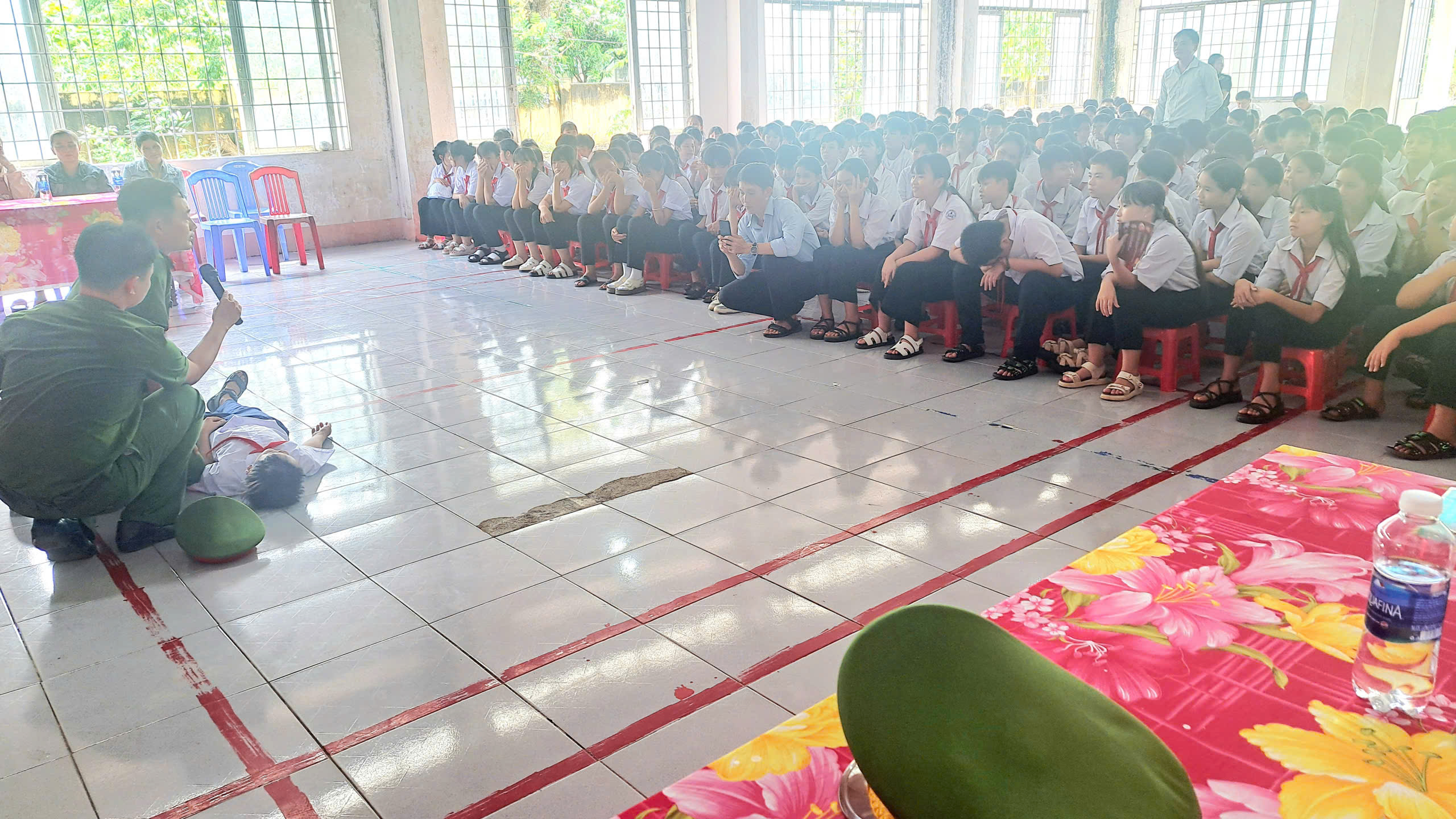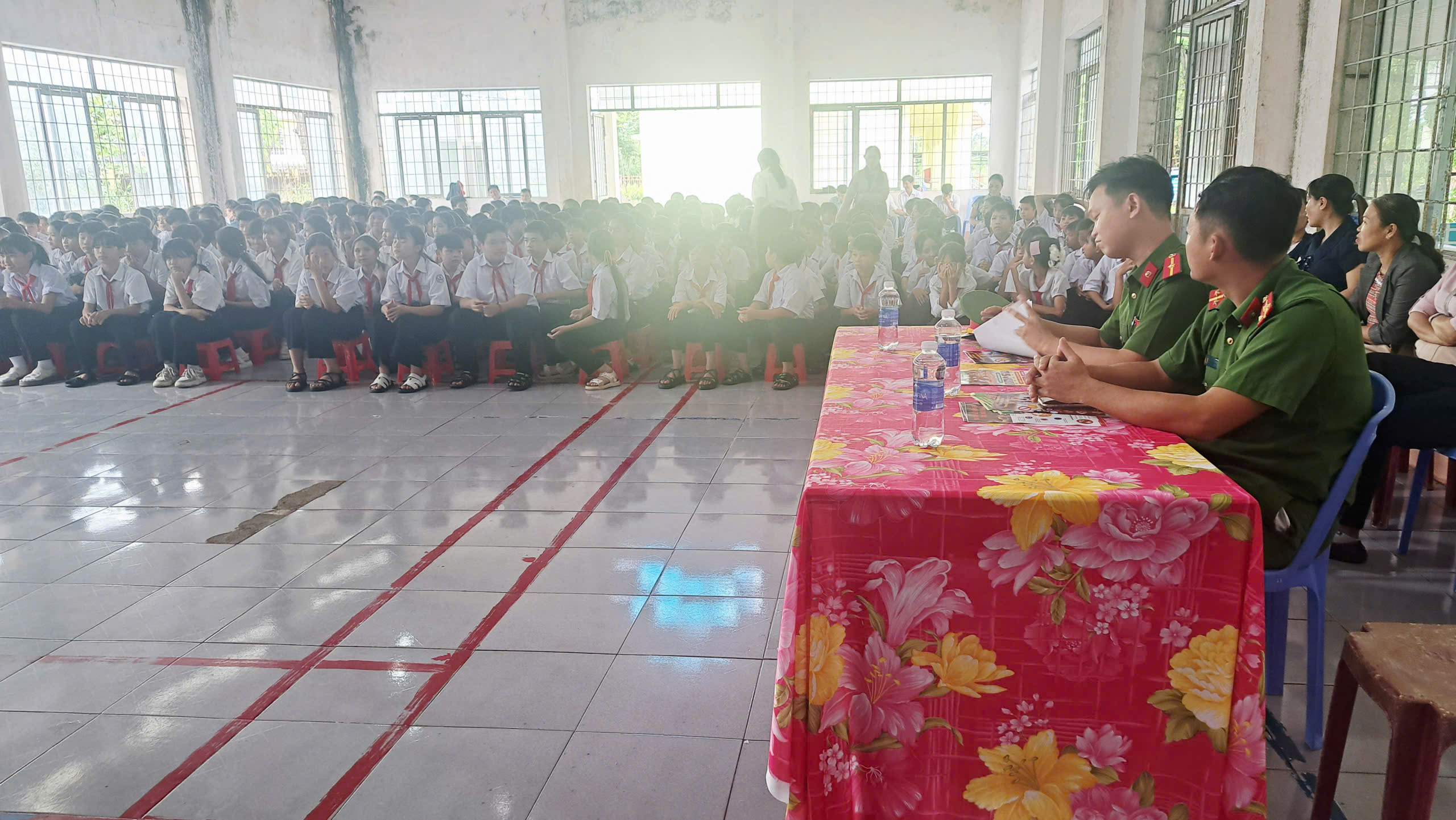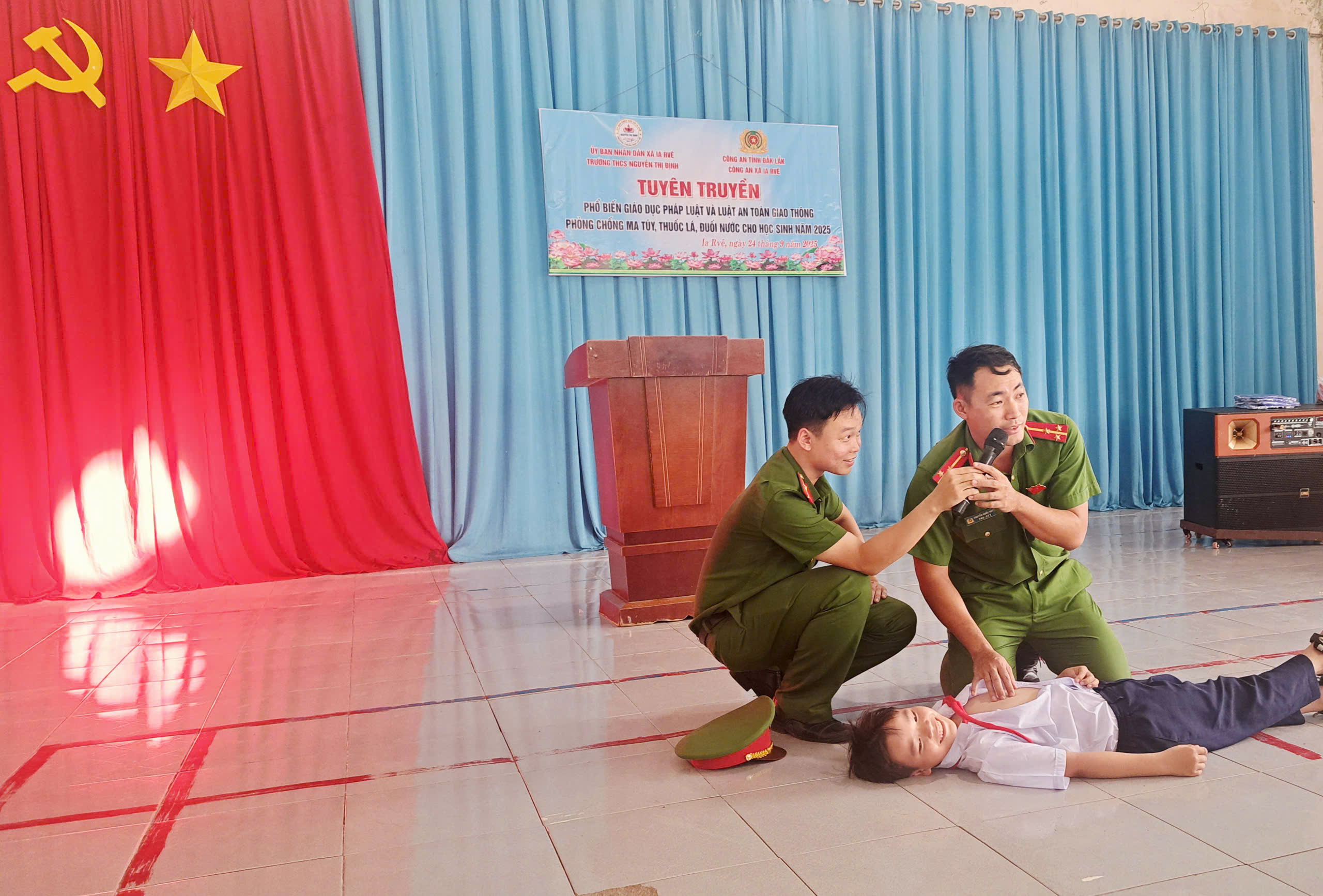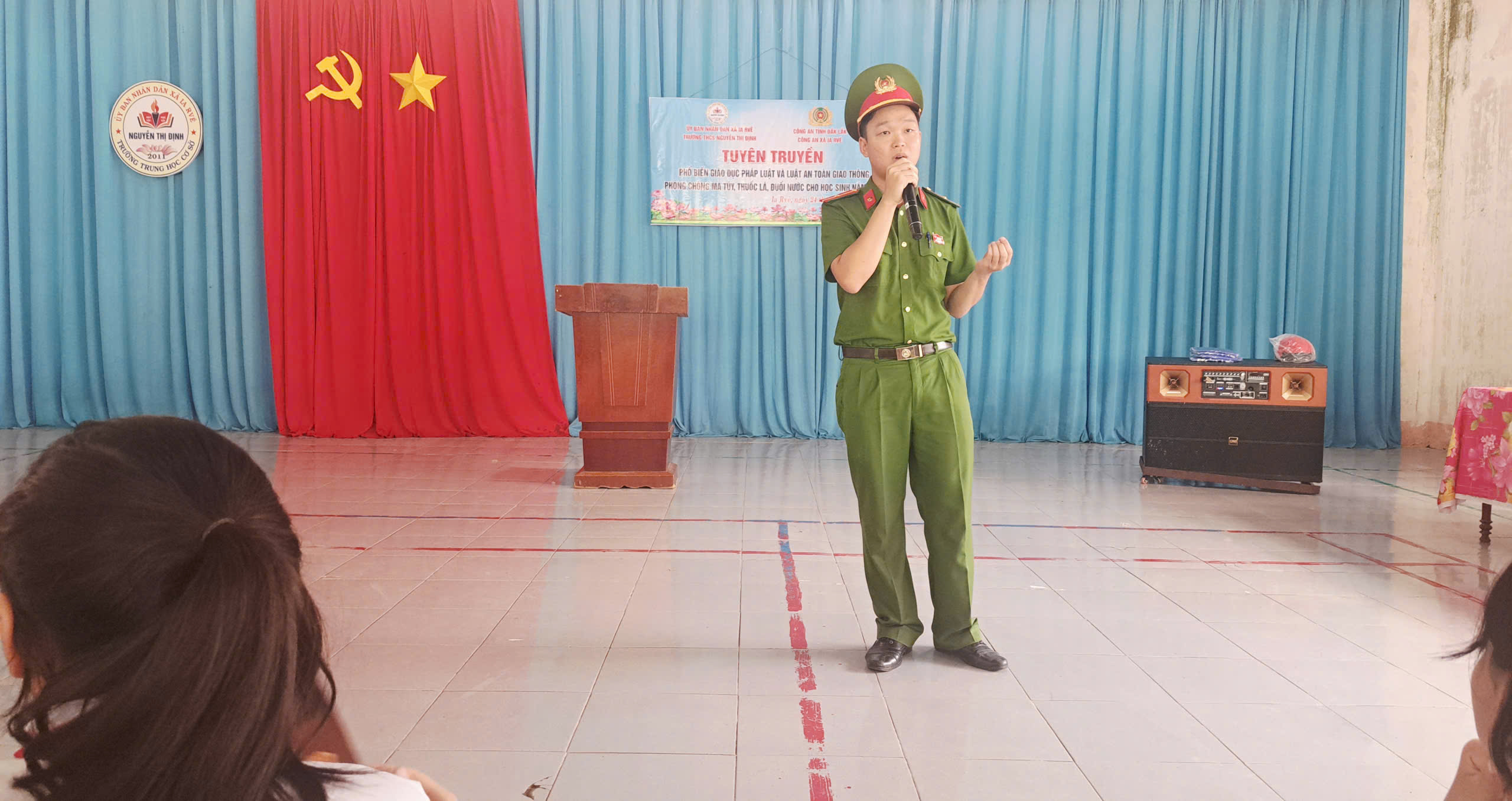 Thực hiện theo công văn số: 219/UBND-VHXH, ngày 22 /9/2025 của UBND xã Ia Rvê về triển khai hoạt động Dự án “Tăng cường năng lực phòng, chống ma tuý trong trường học đến năm 2025” . Vào lúc 13h 30 phút ngày 24 tháng 09 năm 2025, Liên đội THCS Nguyễn Thị Định đã phối hợp cùng lực lượng Công an xã Ia Rvê tổ chức tuyên truyền đến toàn thể học sinh trong việc nghiêm chỉnh chấp hành pháp luật về phòng, chống ma tuý năm học 2025. Về dự với buổi tuyên truyền, nhà trường đã mời 10 phụ huynh đại diện cho 10 chi đội, cùng toàn thể cán bộ giáo viên, nhân viên của nhà trường và đông đủ 322 học sinh tham gia.